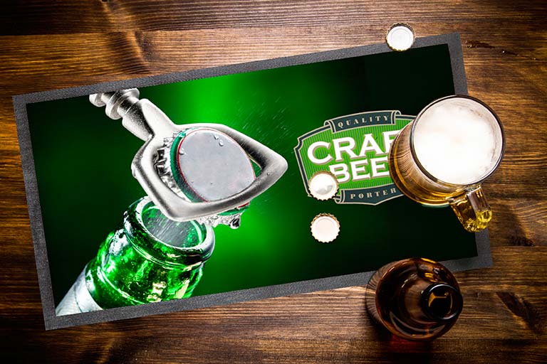 – La surface résistante en polyester tricoté de nos tapis de bar peut être entièrement personnalisée à partir d’un motif de qualité photographique.